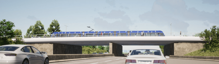 Depuis novembre 2022 // La construction d’un nouveau pont mené par VINCI Autoroutes en lien avec l’extension de la ligne 1 de tramway