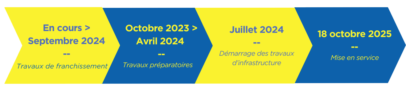 Dans la continuité des travaux préparatoires menés depuis fin 2023 et de la création de l’ouvrage d’art de franchissement de l’autoroute A709 réalisé par ASF, les opérations relatives aux infrastructures ont débuté le 8 juillet 2024.