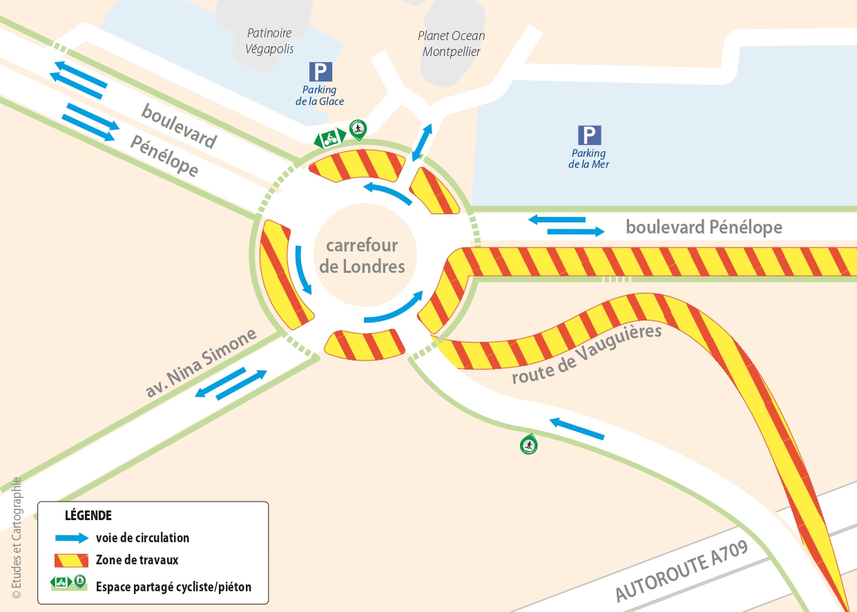 - Le boulevard Pénélope conservera sa configuration actuelle : entre le carrefour de Londres et le carrefour d’Alexandrie, une seule voie rester disponible pour les automobilistes, dans les deux sens.